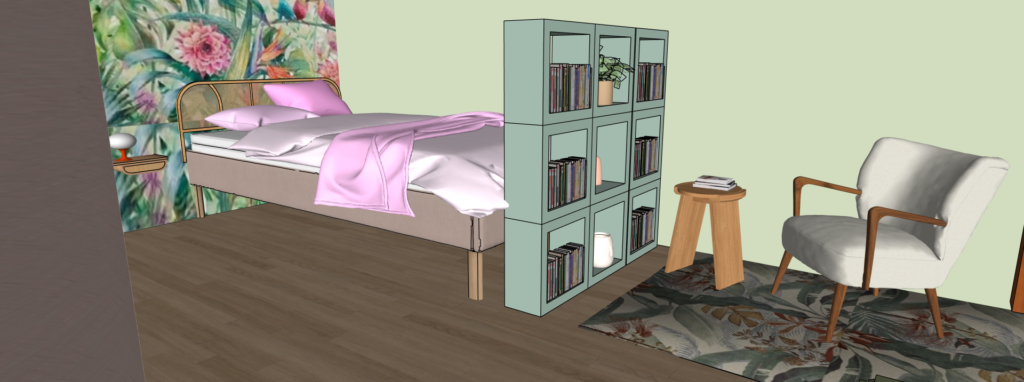 Le papier peint tropical permet d’apporter de la personnalité à la pièce sans la surcharger. Placé sur un seul mur, il crée un véritable point focal et donne immédiatement du style à la chambre.